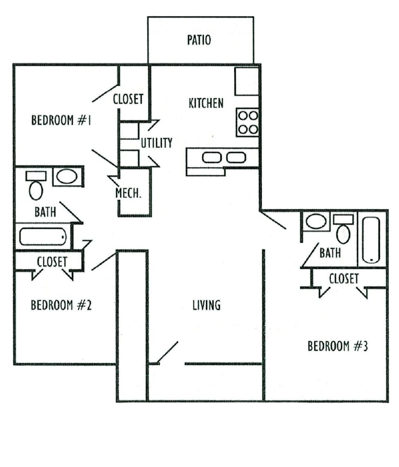 These units are family friendly and offer 1125 sqft. of comfortable living with 3 bedrooms and 2 full baths. Rent: $910-950+/month.